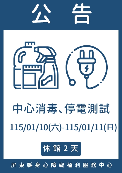 115年1月10日、11日中心消毒 停電測試 休館2日通知!!